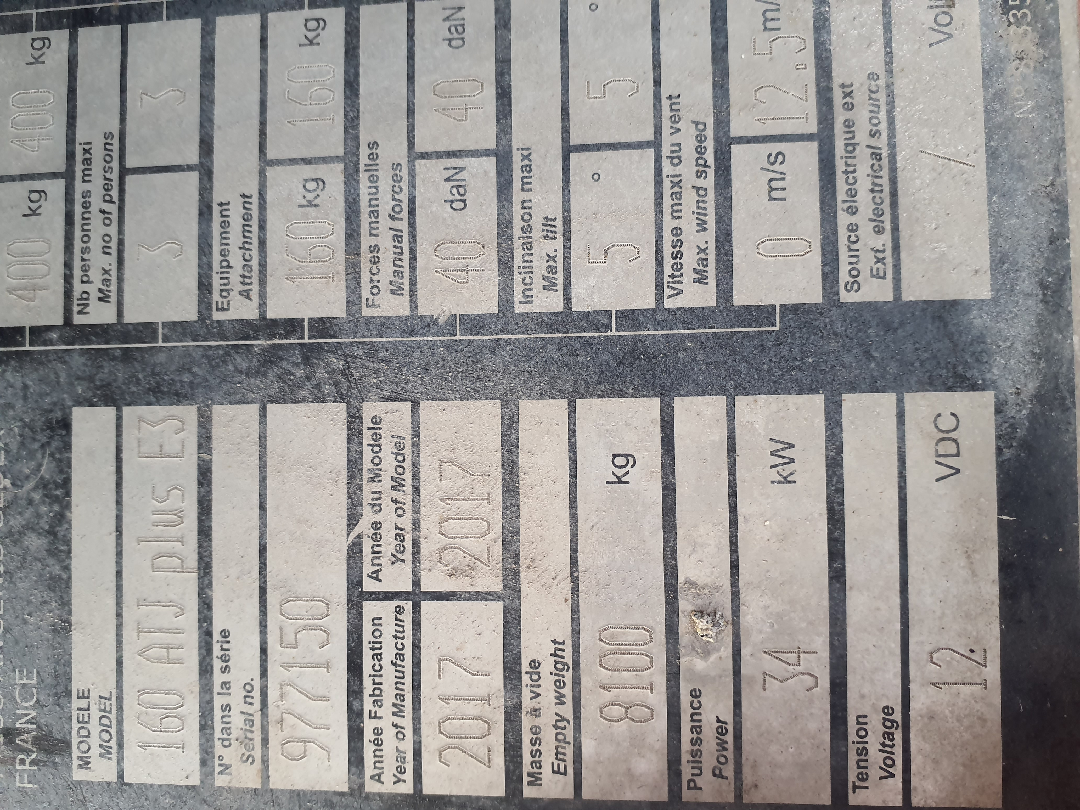 Marque: ManitouType Occasion: Nacelles-Mini- GruesNacellesModel: 160 ATJ + Année: 2017Heures: 3210Prix: 28.500,00 € Contactez nous CaractéristiquesREF11511 Rotation Continue Nacelle charge 400 kg