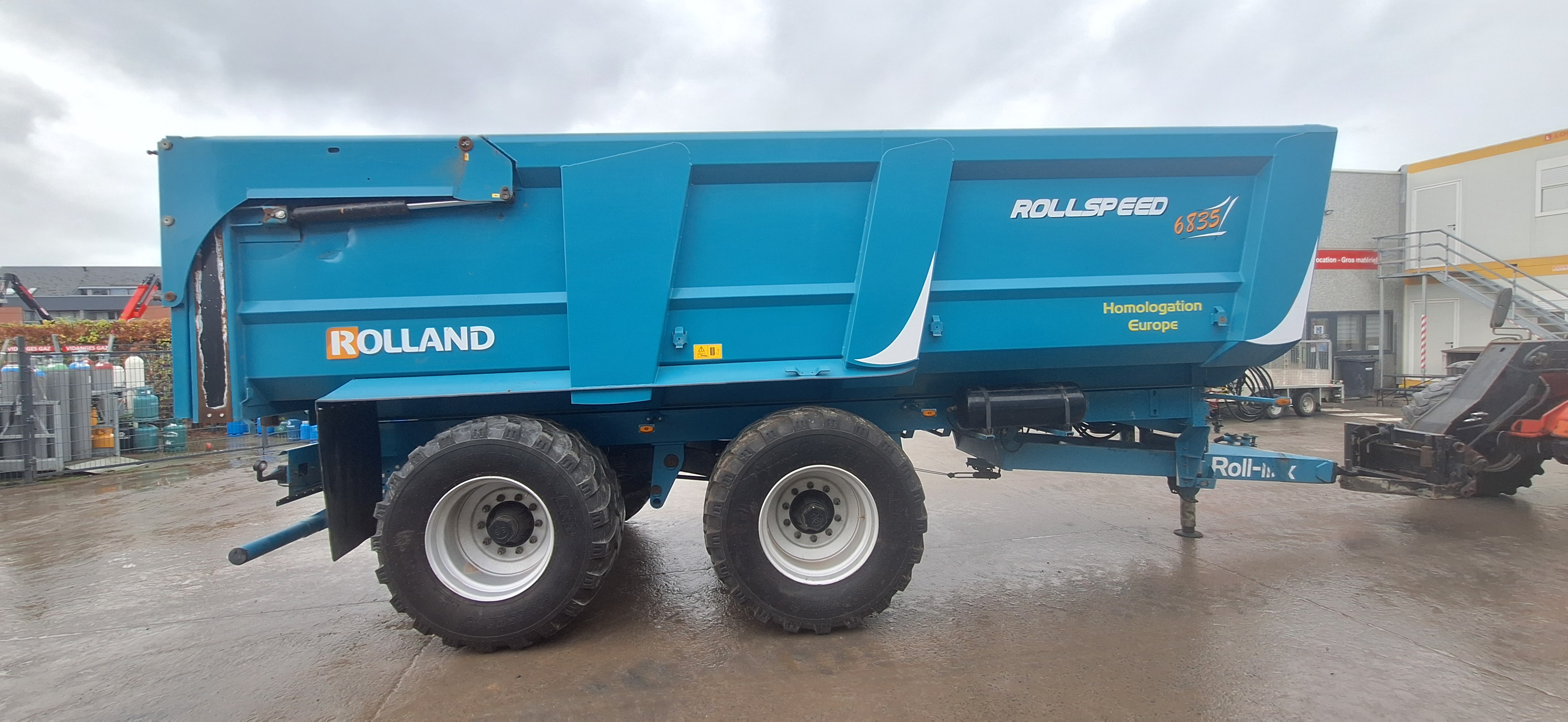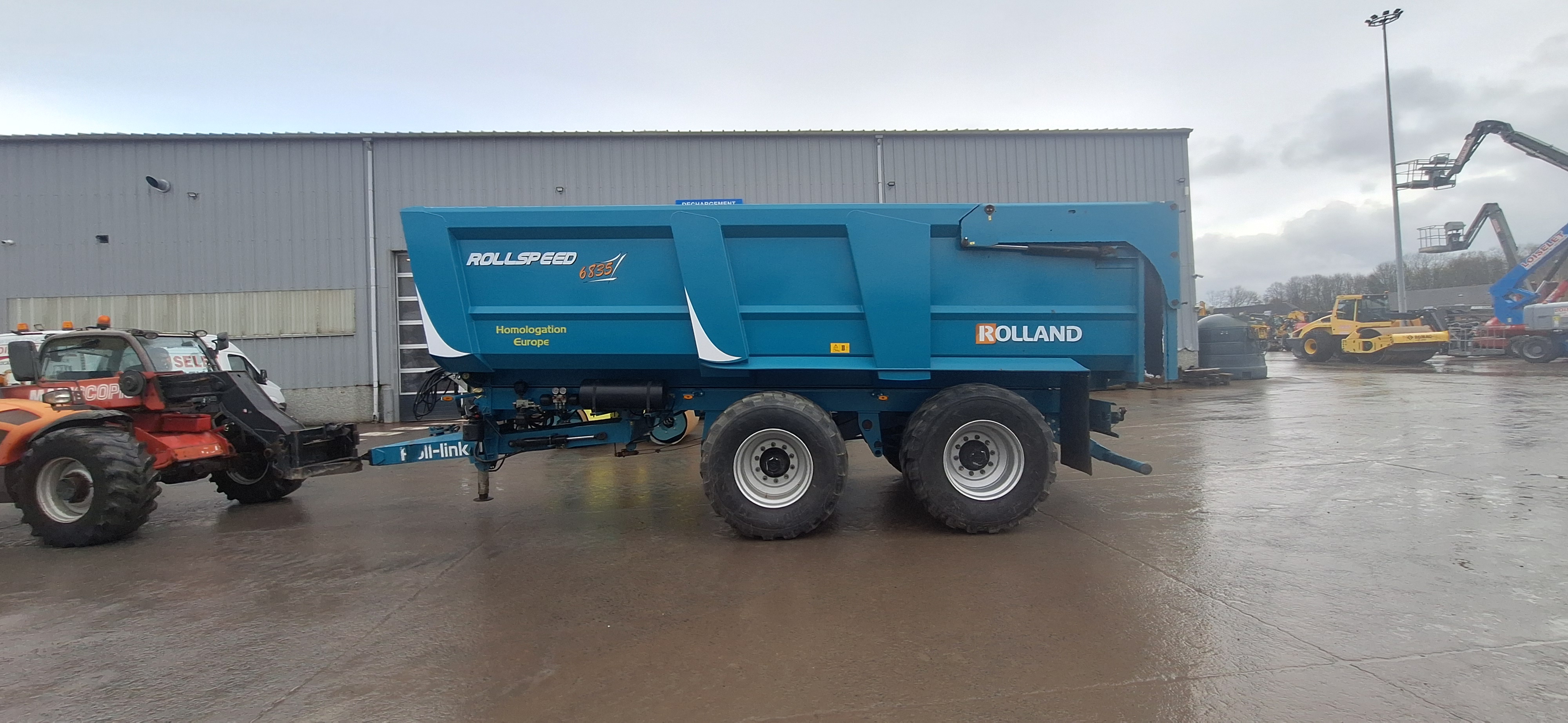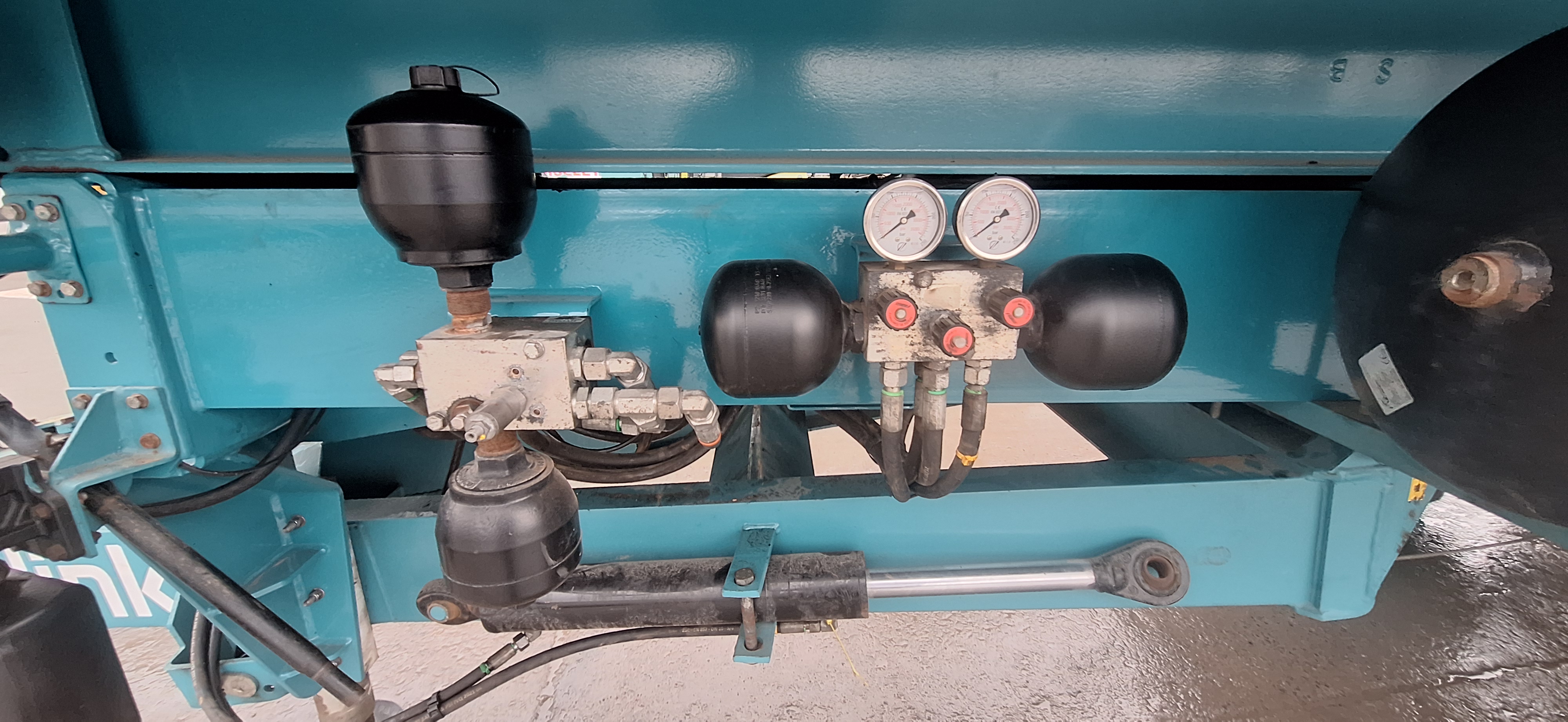 Suspension flèche hydraulique avec boule K80, freinage pneumatique, implantation bâche, passerelle avant, 6 stops chocs pour tapis pomme de terre,bennage 9 pistons, nouvelles roues, essieux tandem directionnels auto-piloté,